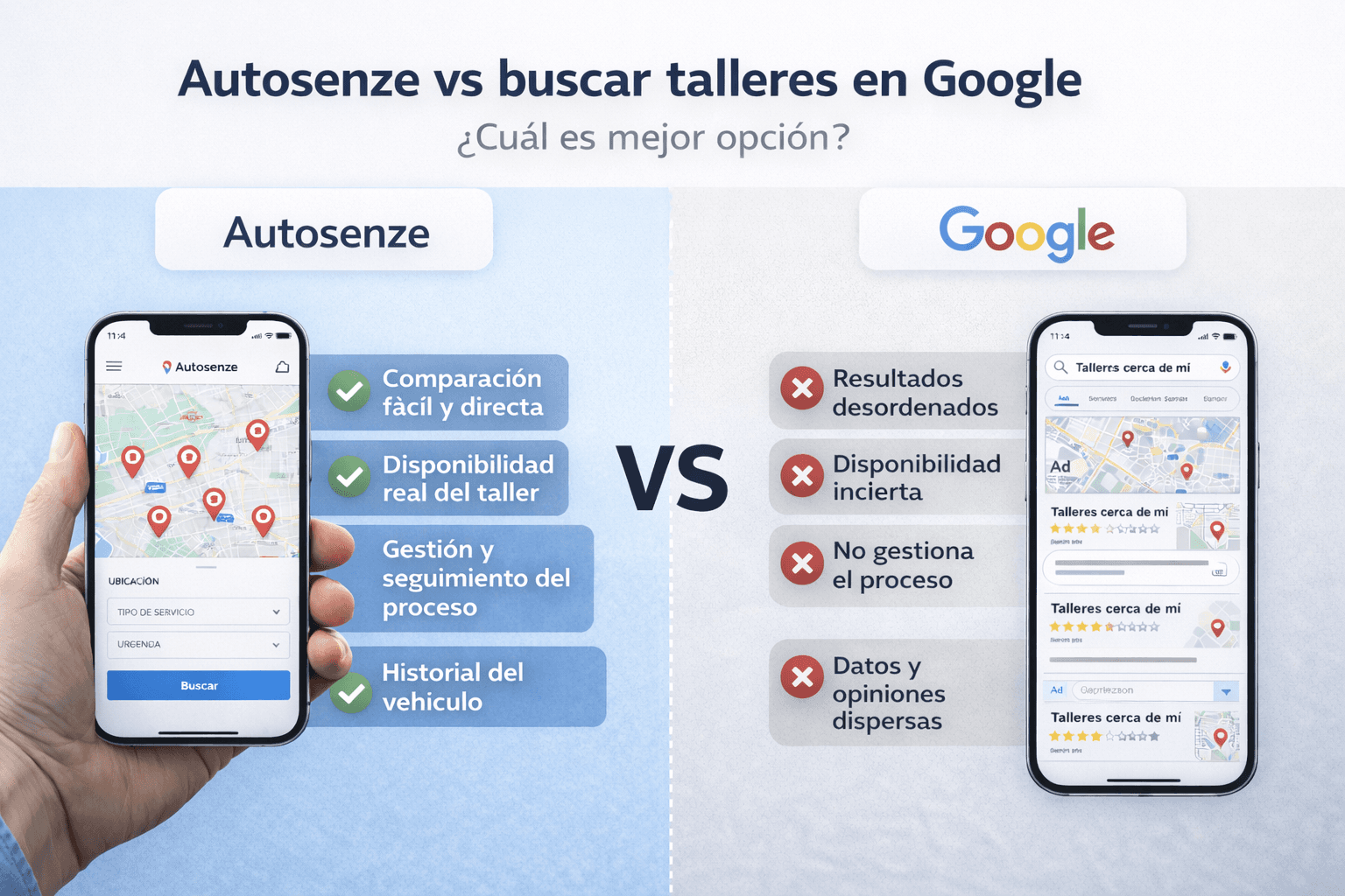 Comparar Autosenze con buscar talleres en Google es clave para entender cuál es la mejor opción si quieres evitar errores y tomar decisiones informadas.